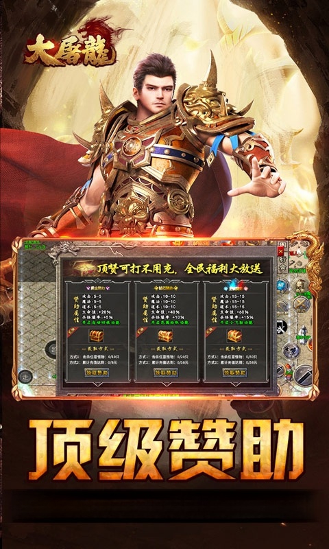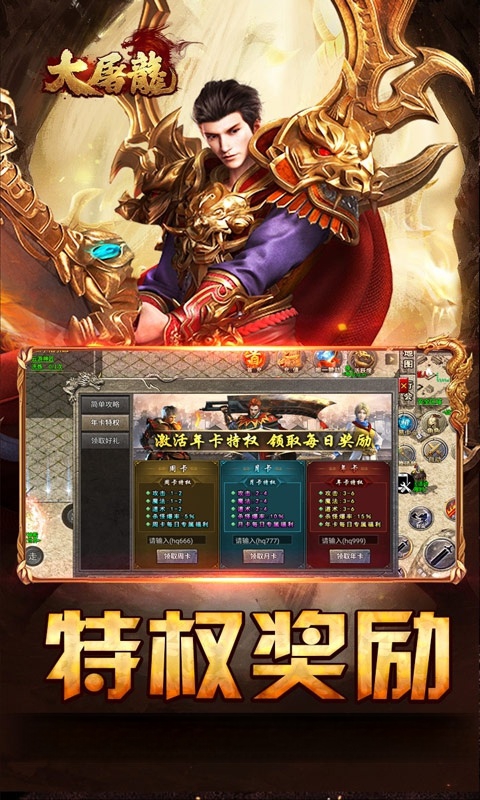 大屠龙(战法道三修送年卡)是一款三职业传奇手游,回味经典的同时创新融合三职业三修玩法,职业觉醒后一键切换职业。新区七日好礼、怪物首杀、在线奖励、等级奖励助力轻松开荒。顶赞可打,激活即领自动回收、范围拾取、小飞鞋功能,礼包码还能兑换周、月年卡特权,主打一个轻松爽玩!