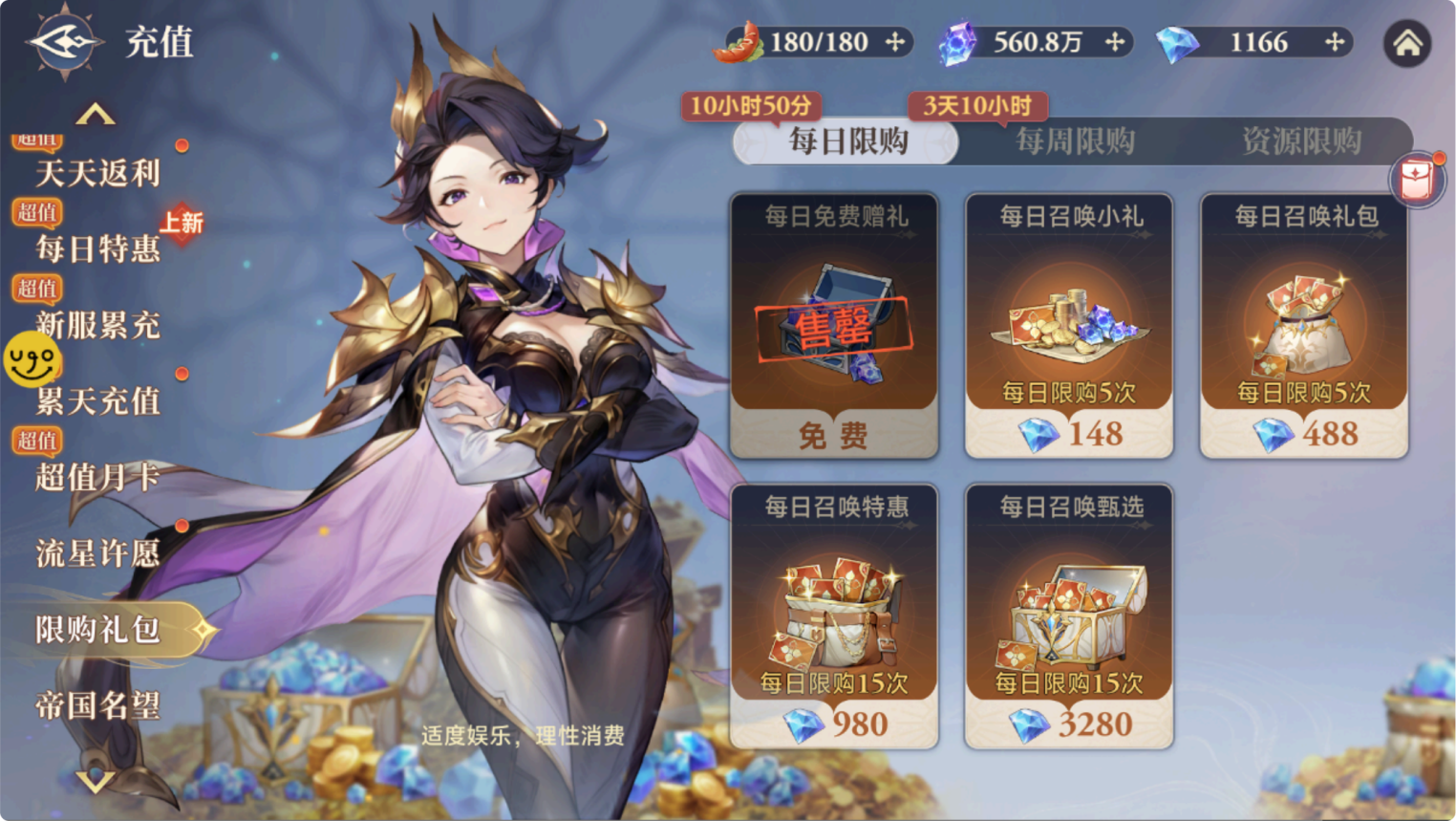新区非常划算的性价比礼包 ,冲榜玩家推荐购买 ,佛系玩家可根据需求选择购买 ,只有九天时间