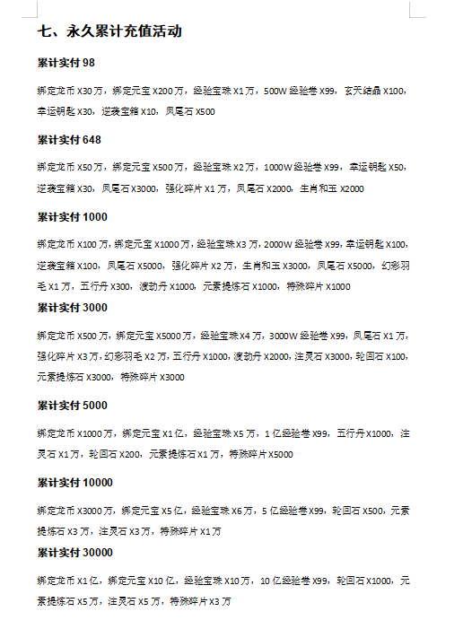 永久累计充值活动