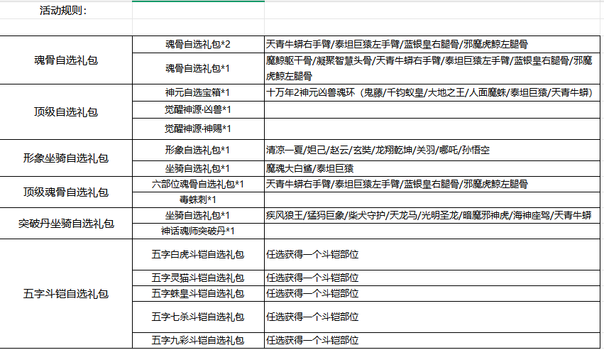 开服表